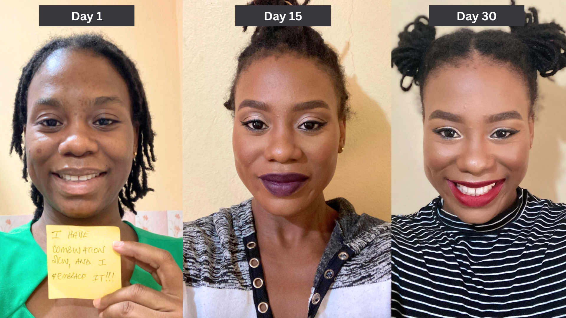 Skin type: combination Β· Climate: Jamaica Β· Practice: 15 minutes a day Β· Result: everyday looks that held up in workdays and weekend events